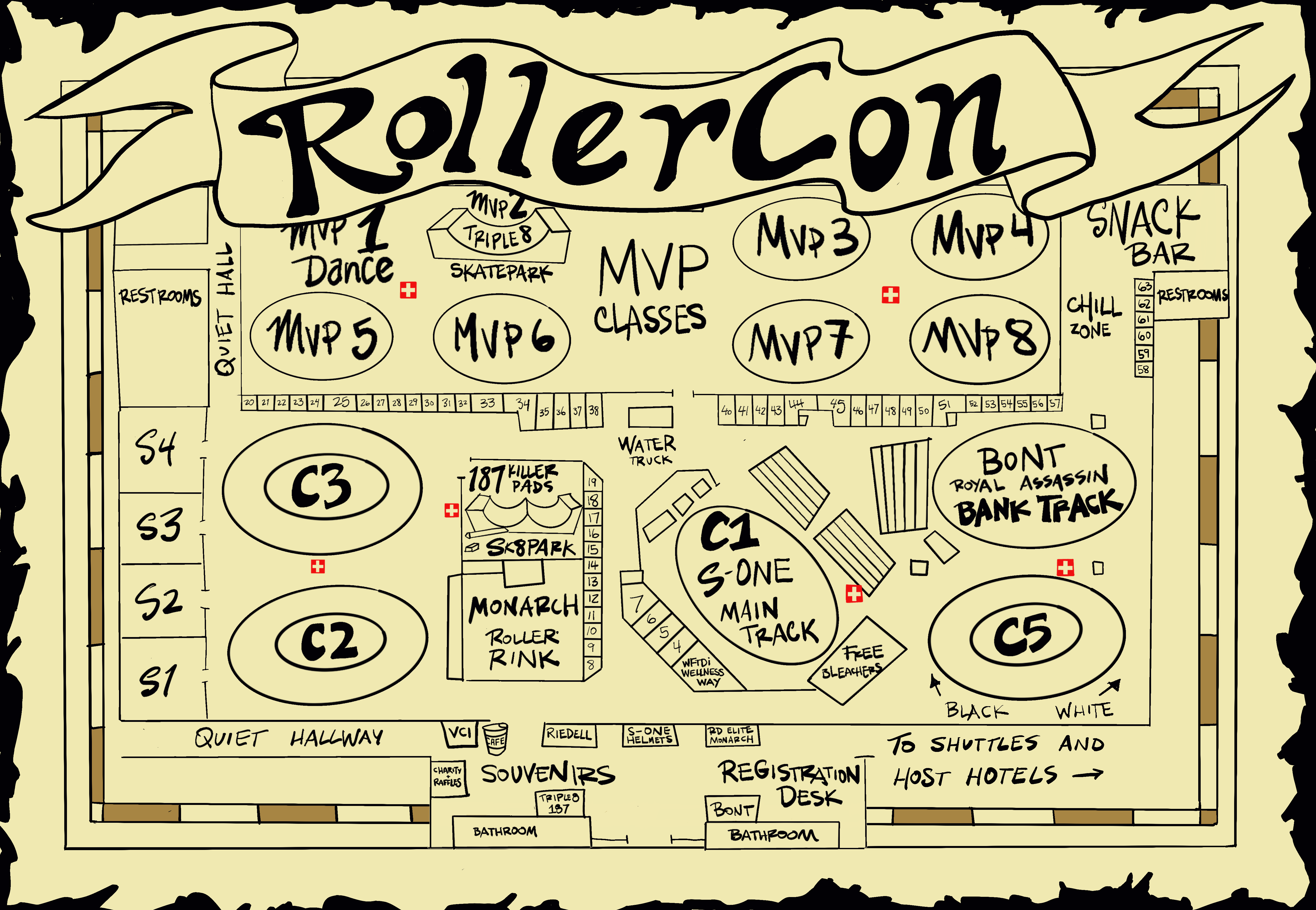 The RollerCon Map (larger file) shows the convention spaces (including tracks, vendor areas and more) inside the Expo at World Market Center. This map also lives in the RollerCon app! This map is subject to change until you’re actually standing in it, but we try to keep the most recent versions here and in the app. Check for updates. |