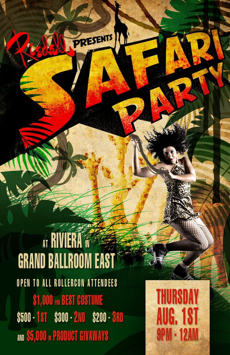 PLEASE NOTE: This is an off skates party. Only Riedell Authorized Performers may skate and be on skates at this party (with special waivers and insurance), and they remove skates immediately after their performance. Our roller skating insurance does not allow RollerCon attendees to skate at 21+ parties that include alcohol. That means everyone else!